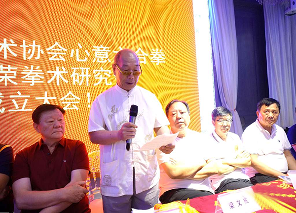 市武术协会副主席兼秘书长梁文成宣读蚌埠市武术协会对蚌埠市武术协会心意六合拳杨春荣拳术研究会任命书及其事项。
